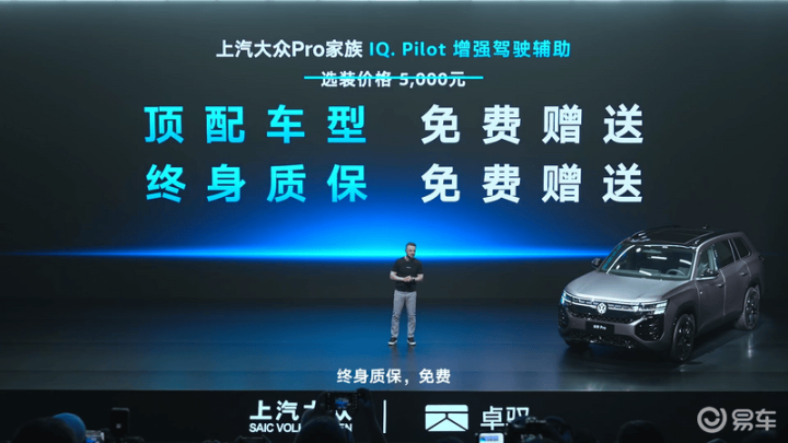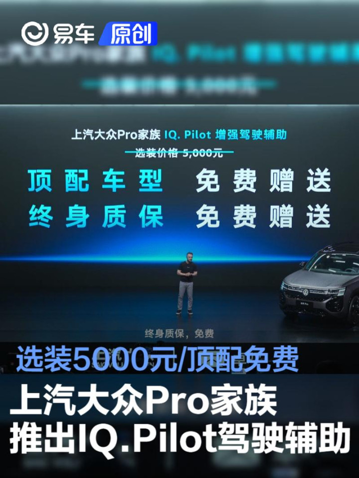 易车讯9月29日,上汽大众召开TECHDAY技术发布会,2026款上汽大众Pro家族均搭载卓驭核心的惯导双目™立体视觉系统与IQ.Pilot驾驶辅助系统,选装价格5000元,顶配车型免费赠送,另外终身质保同样免费赠送。